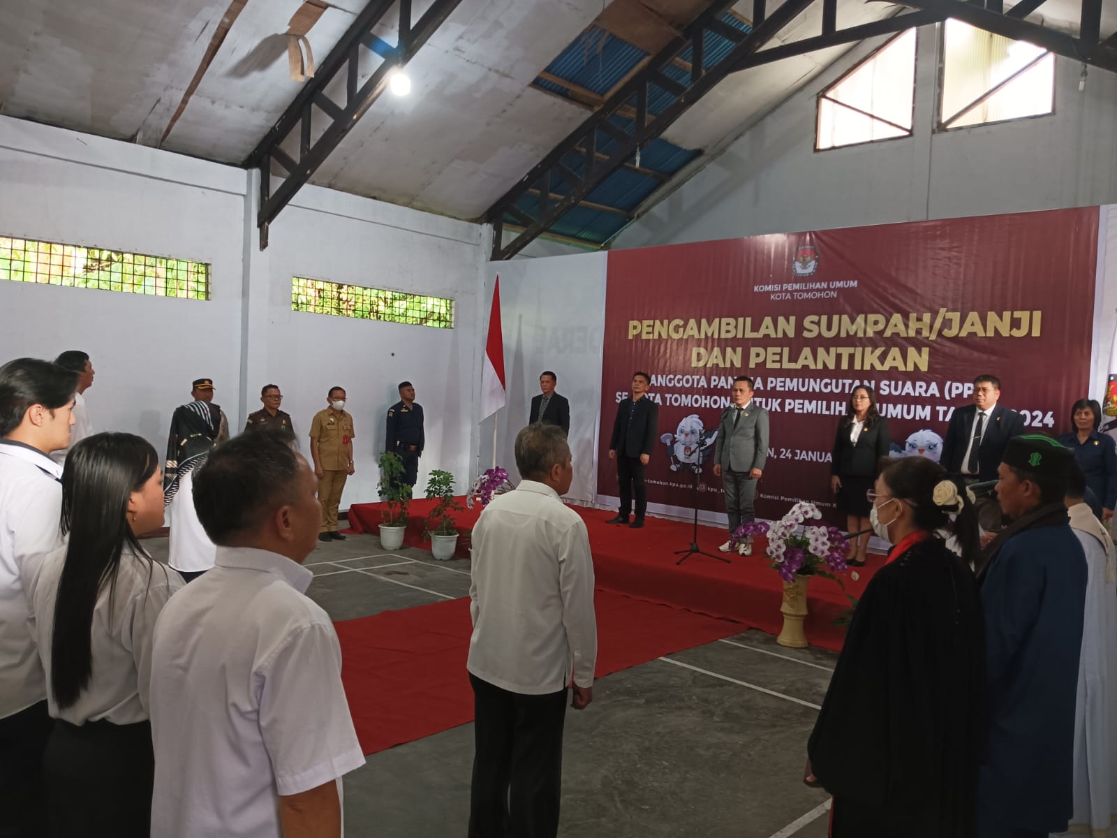 Pilarportal.com,Tomohon – Pemerintah Kota Tomohon diwakili Asisten Pemerintahan dan Kesra Drs O D S Mandagi hadir dalam kegiatan pengambilan sumpah janji dan pelantikan anggota PPS (Panitia Pemungutan Suara) se Kota Tomohon untuk Pemilihan Umum Tahun 2024, yang dilaksanakan di Aula KPU Kota Tomohon. Selasa (24/01/2023).