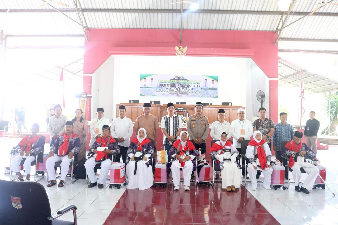 Pilarportal.com, Minsel – Bupati Minahasa Selatan, Franky Donny Wongkar, SH., secara resmi melepas keberangkatan delapan calon jemaah haji Kabupaten Minahasa Selatan tahun 1446 H / 2025 M.