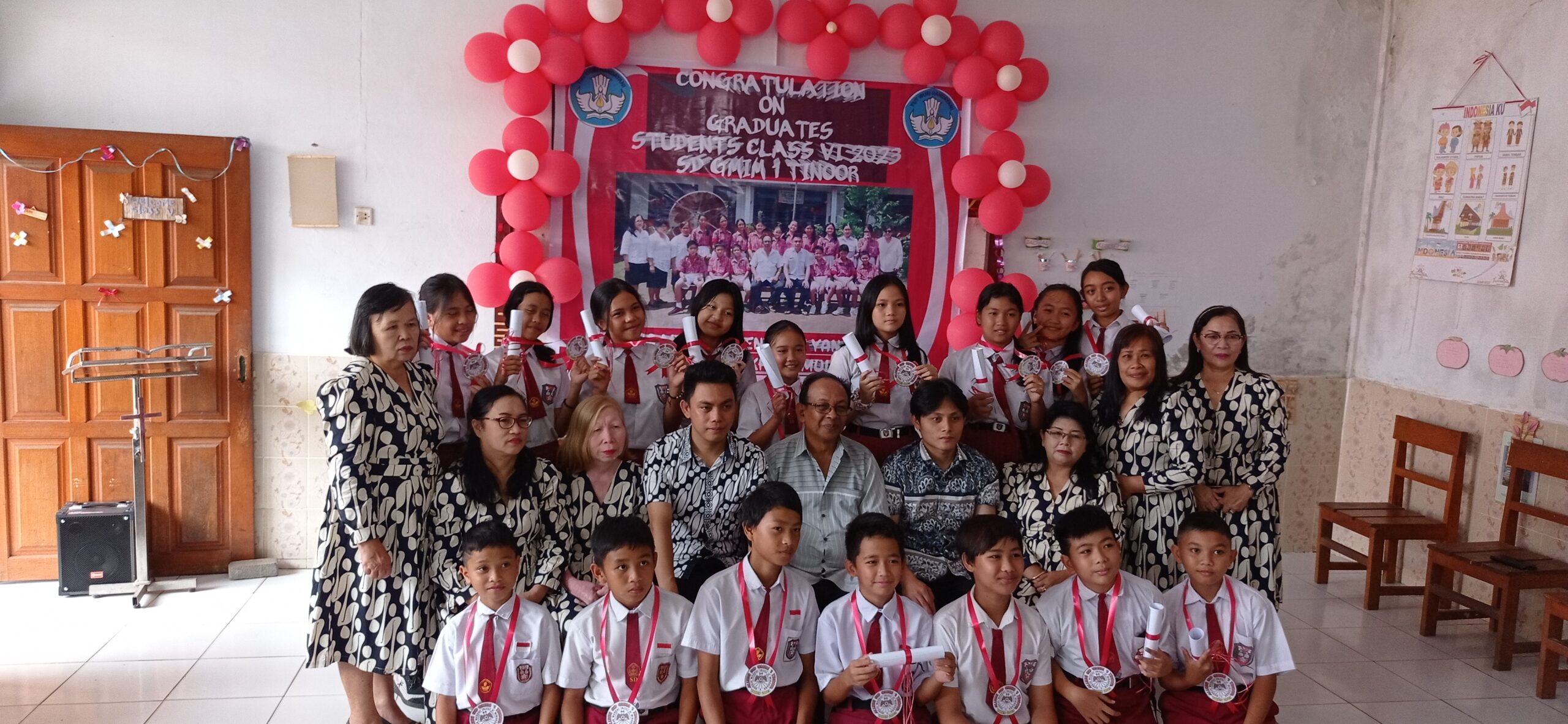 Pelaksanaan pelepasan kelulusan, Congratulation on Graduates Students Class Vl 2023. Dengan tema ‘Semoga menjadi Generasi yang beriman dan berakhlak mulia’ digelar di SD GMIM 1 Tinoor, Sabtu (24/06/23), yang ditandai dengan ibadah syukur yang dipimpin oleh Pdt. Saul Mamuaya, STh.