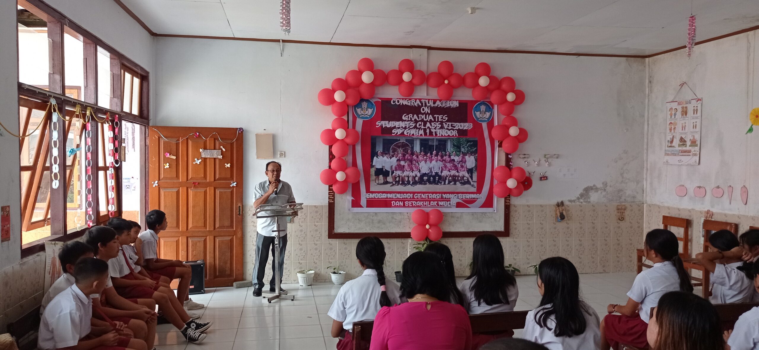 Pelaksanaan pelepasan kelulusan, Congratulation on Graduates Students Class Vl 2023. Dengan tema ‘Semoga menjadi Generasi yang beriman dan berakhlak mulia’ digelar di SD GMIM 1 Tinoor, Sabtu (24/06/23), yang ditandai dengan ibadah syukur yang dipimpin oleh Pdt. Saul Mamuaya, STh.