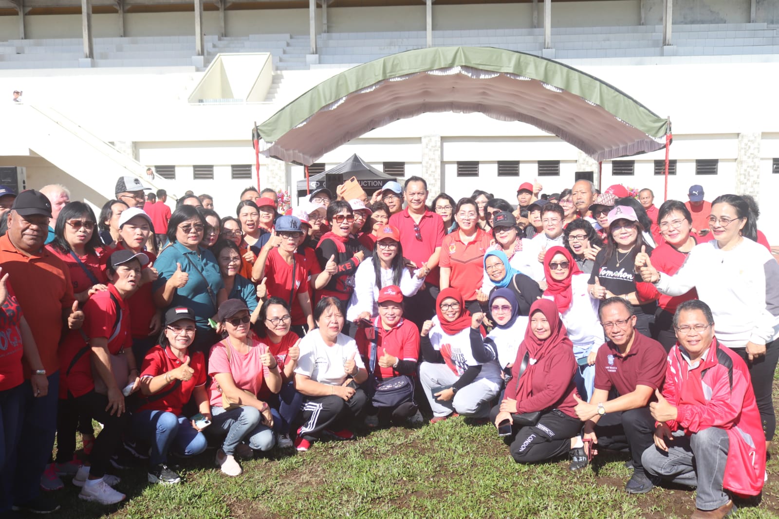 Kegiatan diawali dengan jalan sehat dari kompleks menara Alfa omega sampai finish di stadion babe palar Kota Tomohon.