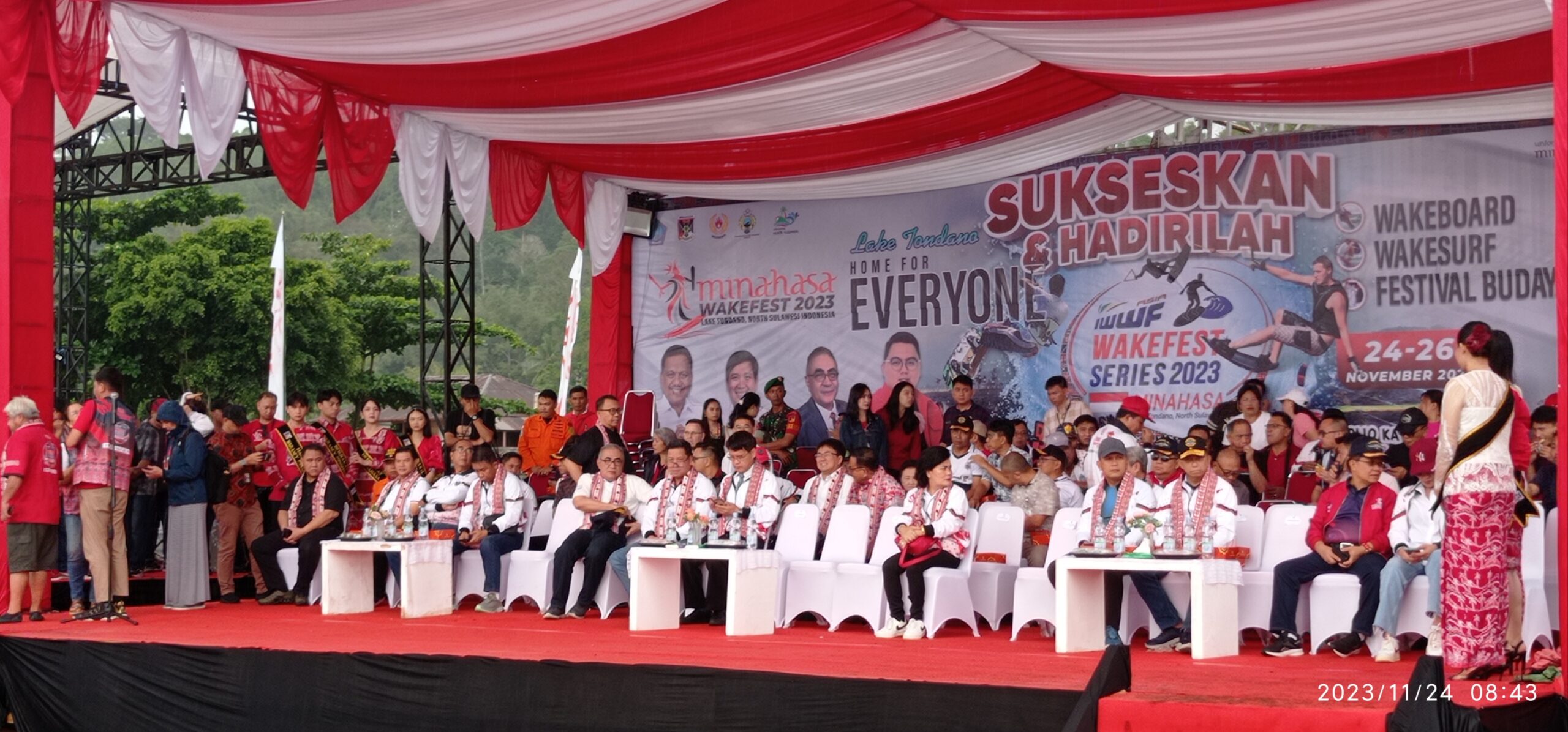 Pembukaan Wakefest yang berlangsung pagi hari, dengan dihadiri Pangdam XIII/Merdeka, Gubernur Sulawesi Utara bapak Olly Dondokambey, Wakil Gubernur Gubernur Steven Kandouw, Penjabat Bupati Minahasa Dr. Jemmy Stani Kumendong, M.Si, serta Ketua Panitia Rio Dondokambey, Sekda Minahasa Lynda Watania bersama dengan Presiden IWWF Asia Thomas Lin dan ratusan warga serta tamu undangan.