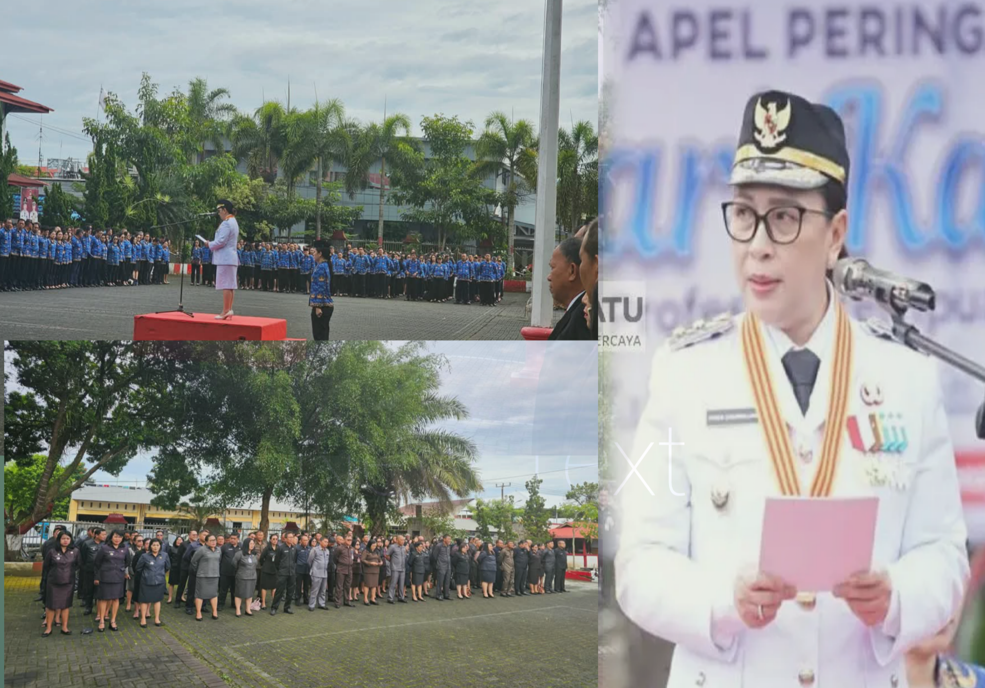 Wakil Bupati Minahasa, Vanda Sarundajang, bertindak sebagai pembina upacara dan membacakan amanat Menteri Dalam Negeri Tito Karnavian.
