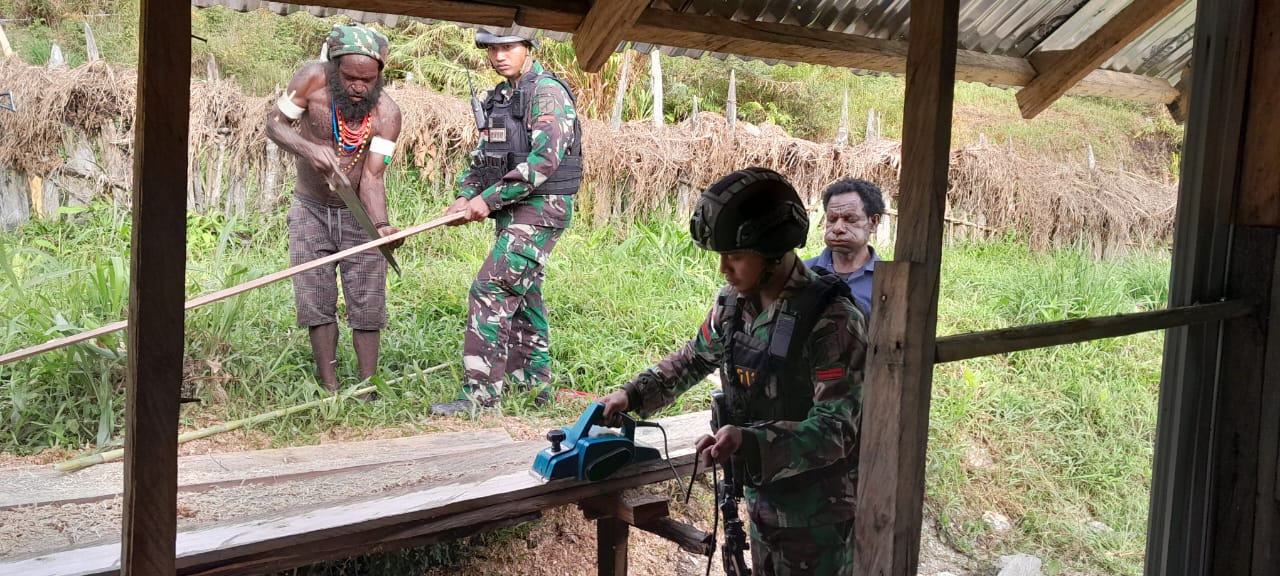 Pilarportal.com – Papua – Memasuki bulan keenam penugasan, Satgas Pamtas RI-PNG Kewilayahan Yonif R 712/Wiratama senantiasa menunjukkan kebersamaan dan gotong royong bersama masyarakat disekitar jajaran pos-pos satgas yang berada di Kab. Puncak Jaya. Dimana pun ada kegiatan yang berkaitan dengan kepentingan rakyat, satgas berusaha untuk selalu hadir dan turut serta membantu kelancaran kegiatan. (Kamis, 22 Juni 2013)