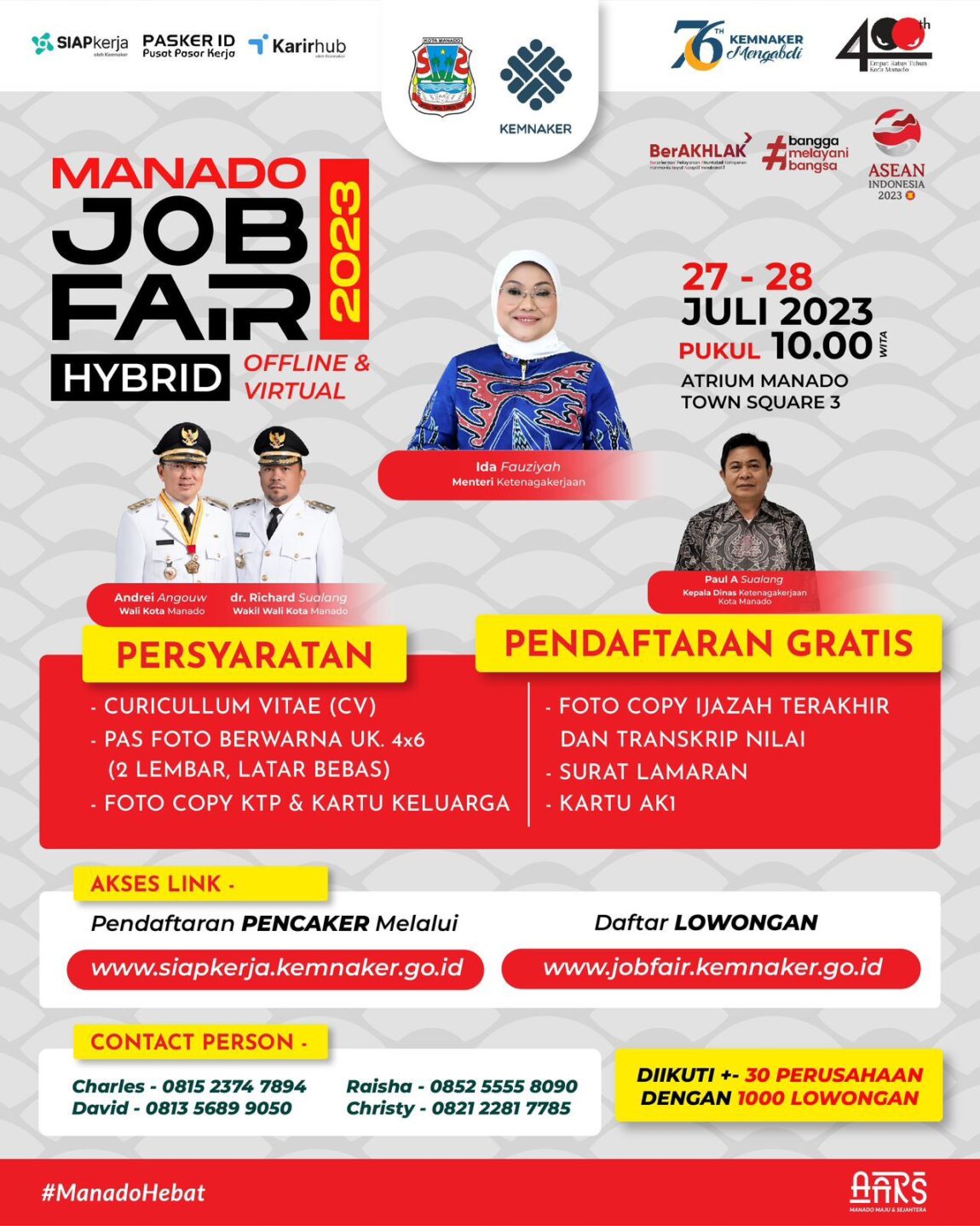 Pilarportal.com – ManadoPemerintah Kota Manado melalui Dinas Ketenagakerjaan kembali akan melaksanakan Job Fair 2023. Kegiatan kali ini akan digelar di Mantos 3, Kamis – Jumat (27- 28/7).