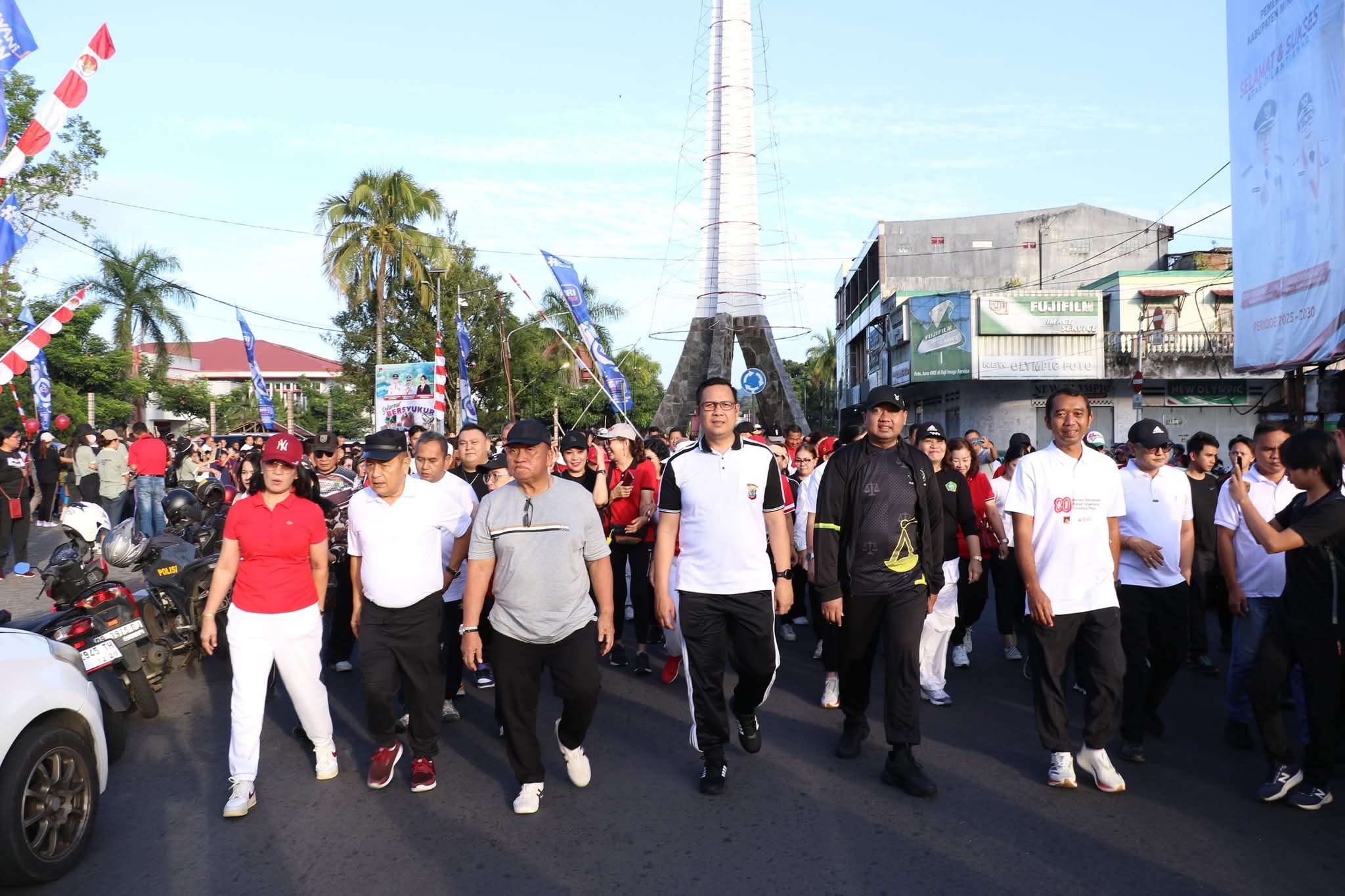 Bupati Minahasa, Robby Dondokambey , M.A.P., dalam sambutannya mengapresiasi sinergitas Forkopimda dan instansi vertikal bersama seluruh elemen masyarakat. “Jalan sehat ini merupakan simbol dari perjalanan kita sebagai bangsa, melangkah bersama dalam satu derap dan semangat membangun Indonesia, khususnya tanah Minahasa yang kita cintai,” ujar Bupati.