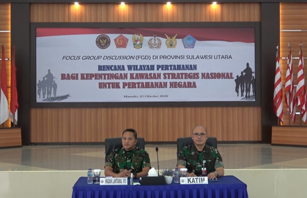 MANADO – PILARPORTAL — Pangkalan Utama TNI AL (Lantamal) VIII menggelar Focus Group Discussion (FGD) tentang Implementasi rencana wilayah pertahanan, bagi kepentingan kawasan strategi nasional untuk pertahanan negara. Kegiatan tersebut berlangsung di Gedung Yos Sudarso Markas Komando Lantamal VIII, Jalan Yos Sudarso, No. 1, Kairagi Weru, Paal Dua, Manado. Rabu (25/10).