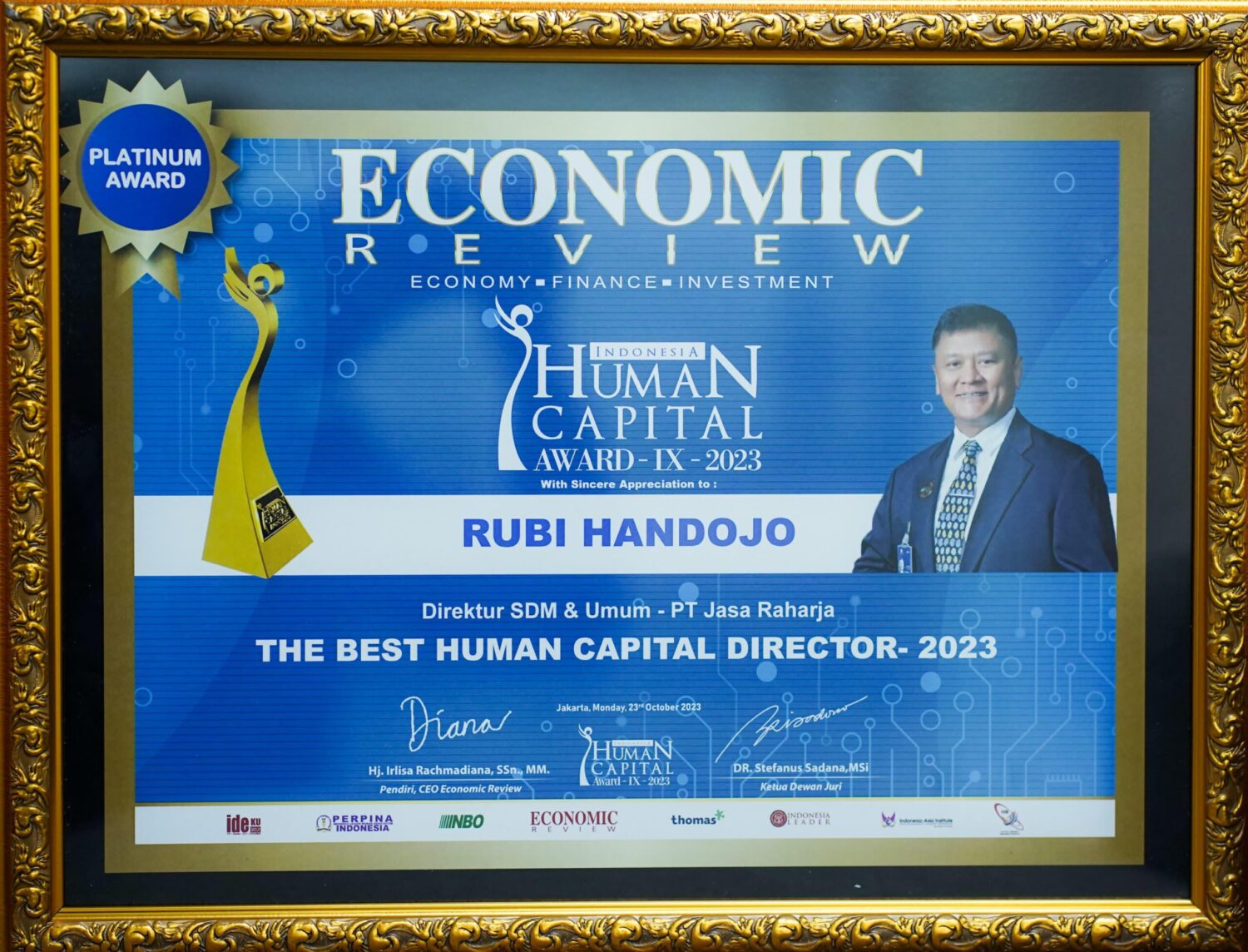 Pilarportal.com — Jakarta – Jasa Raharja berhasil meraih dua penghargaan, yakni The Best Culture & Organizational Resilence 2023 Platinum Award dan The Best Human Capital Director 2023 Platinum Award, dalam ajang Indonesia Human Capital Award 2023 yang digelar Economic Review.