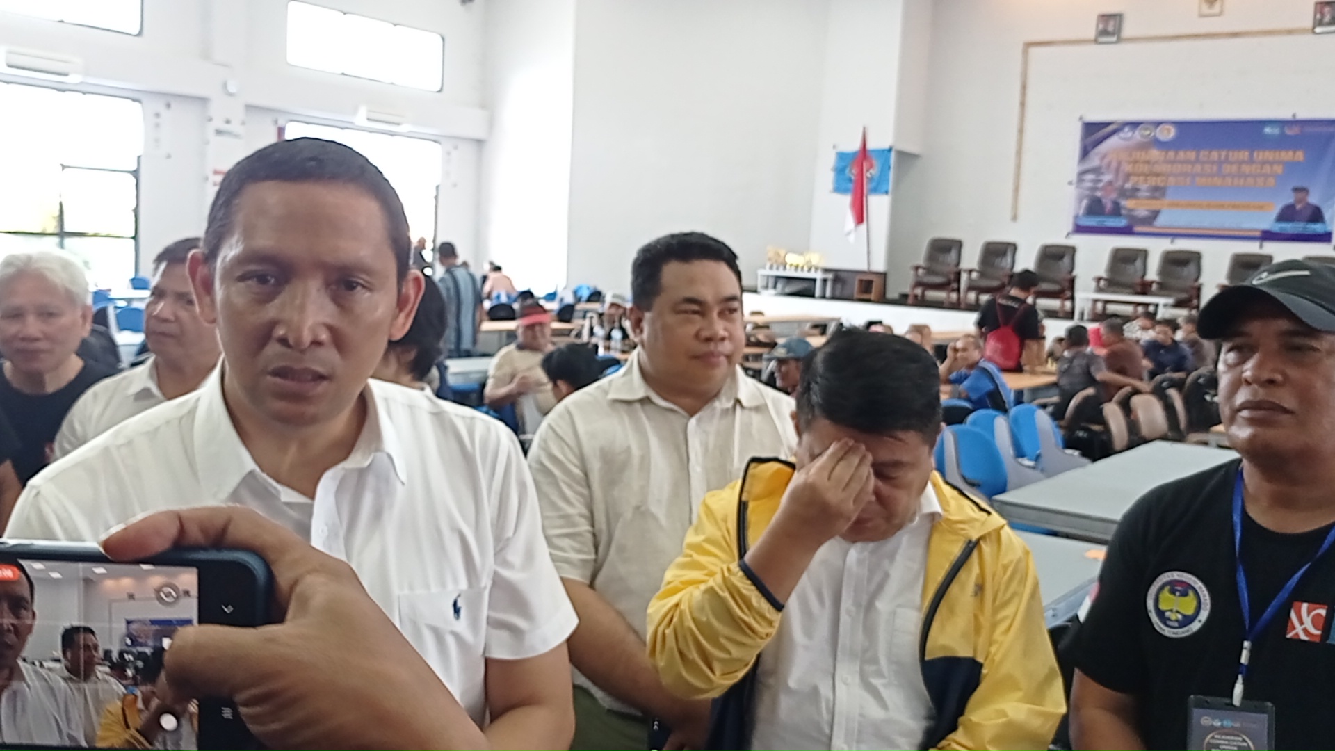 Foto Ist: (kameja putih tengah) Rektor Unima Joseph Philip Kambey, saat menyaksikan para peserta dalam kejuaraan catur.