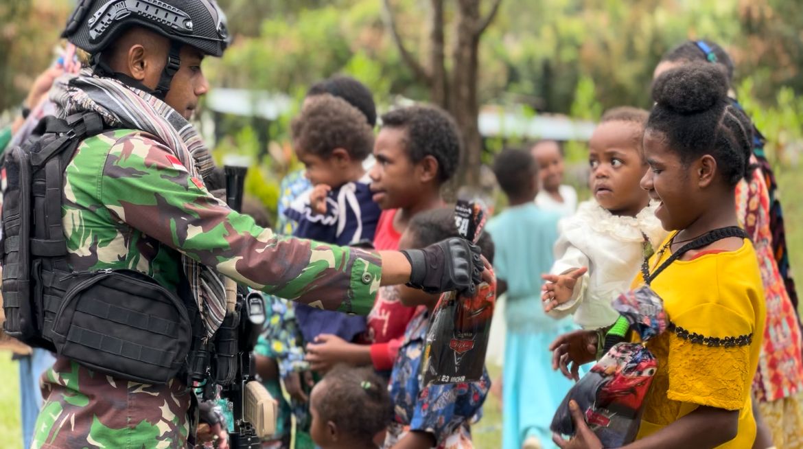 Sontak mereka senang dengan kejutan ini dikarenakan mobil dinas militer menghadang mereka langsung di tengah jalan. Dengan sapaan dan senyum yang lebar, anggota satgas mulai membagikan bingkisan antara lain sembako serta snack kepada warga dan anak-anak yang hendak pergi ke gereja untuk beribadah.