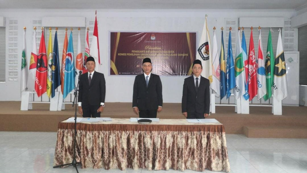 Adapun tiga PAW Komisioner KPU Sangihe yang dilantik, yakni Dellas Thimotius Marasut, Japri Lintuhaseng dan Rahmat Gaib.