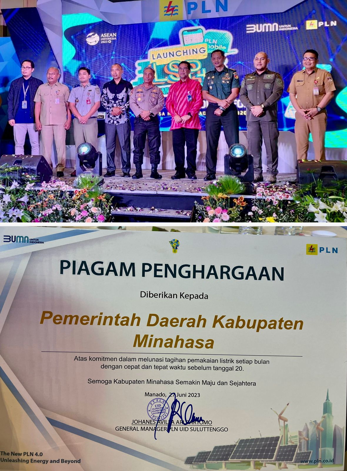 Adapun Penghargaan tersebut diterima saat pelaksanaan Launching Layanan Satu Pintu dan Forum Stakeholder BUMN PLN yang dibuka oleh General Manager PLN UID Suluttenggo Johanes Ari Dartomo pada Selasa, (27/06/2023) di Hotel Luwansa Manado.