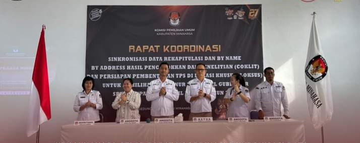Piarportal.com,Minahasa – Komisi Pemilihan Umum (KPU) Kabupaten Minahasa menggelar sosialisasi dan rapat koordinasi (rakor) sinkronisasi hasil Coklit dan pembentukan tempat pemungutan suara (TPS) khusus menjelang pemilihan calon kepala daerah pada bulan November ini.