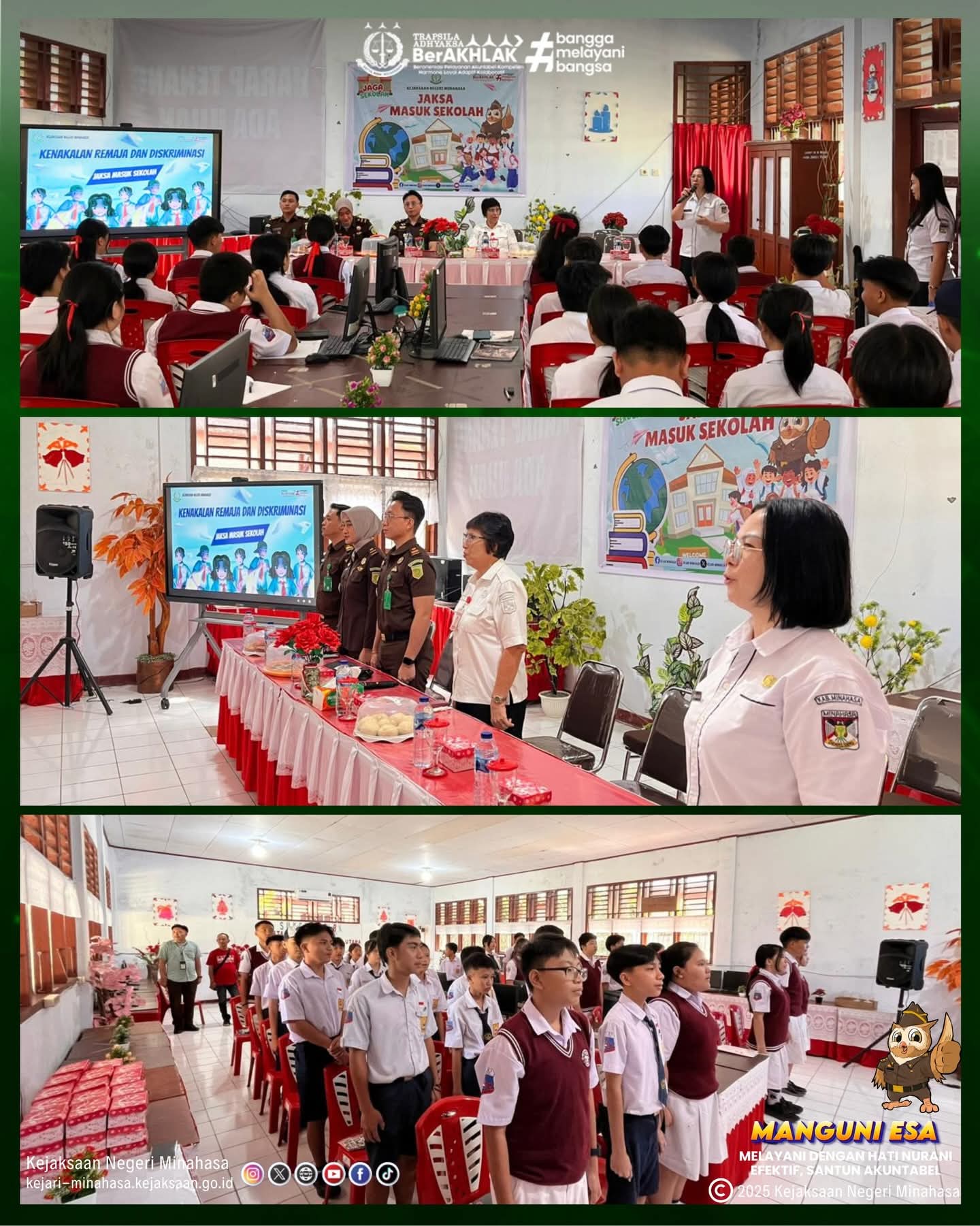 Pilarportal.com,TONDANO – Kejaksaan Negeri (Kejari) Minahasa telah melaksanakan kegiatan Jaksa Masuk Sekolah (JSM) kegiatanini dilaksanakan di SMP Negeri 1 Tondano, dengan fokus materi pencegahaan Kenakalan remaja dan Diskriminasi di Lingkungan Sekolah. Rabu (28/1/2026).