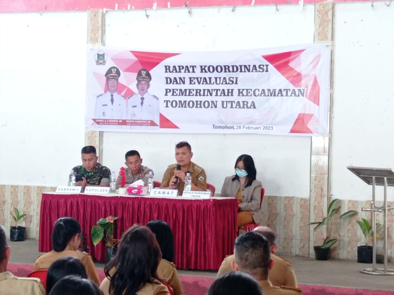 Pilarportal.com,Tomohon – Pemerintah Kecamatan Tomohon Utara, Kota Tomohon, gelar Rapat Koordinasi dan Evaluasi (Rakorev) di bertempat BPU Kantor Kelurahan Tinoor Satu Kecamatan Tomohon Utara, Selasa (28/02).