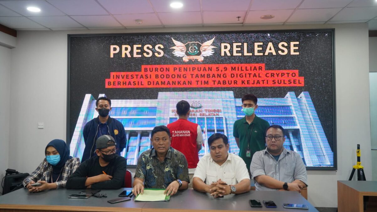 Pilarportal.com – Sulsel – Pada hari ini Jumat (26/05/2023) pukul 10.55 WITA bertempat di Perumahan Findaria Mas Kelurahan Tamalanrea Kecamatan Tamalanrea Kota Makassar, Tim Tangkap Buron (Tabur) Intelijen Kejaksaan Tinggi Sulawesi Selatan bersama Tim Tabur Kejaksaan Agung Republik Indonesia, telah berhasil mengamankan “BURONAN” asal Kejaksaan Negeri Makassar Provinsi Sulawesi Selatan yang bernama HAMSUL HS, S.E. (40 Tahun) yang merupakan Terpidana dalam Perkara Tindak Pidana Penipuan Secara Bersama-sama dengan modus menawarkan korbannya bisnis investasi tambang digital Bodong berupa koin Crypto hingga korban mengalami kerugian materi sebesar Rp. 5,9 Milyar.