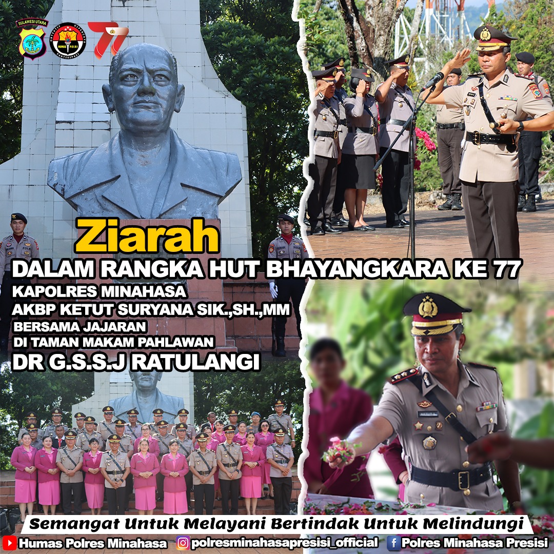 Dalam kegiatan tersebut, Kapolres Ketut Suryana mengatakan, menjelang HUT ke-77 Bhayangkara, Polres Minahasa bersama jajaran melaksanakan ziarah ke Taman Makam Pahlawan Nasional GSSJ Sam Ratulangi.