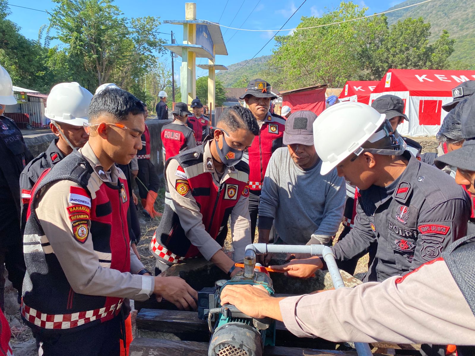 Sinergi dan kerja keras personel Polda NTT membuahkan hasil pada pukul 12.30 WITA, ketika proses perbaikan sumur selesai dan air bersih mulai mengalir untuk digunakan warga.