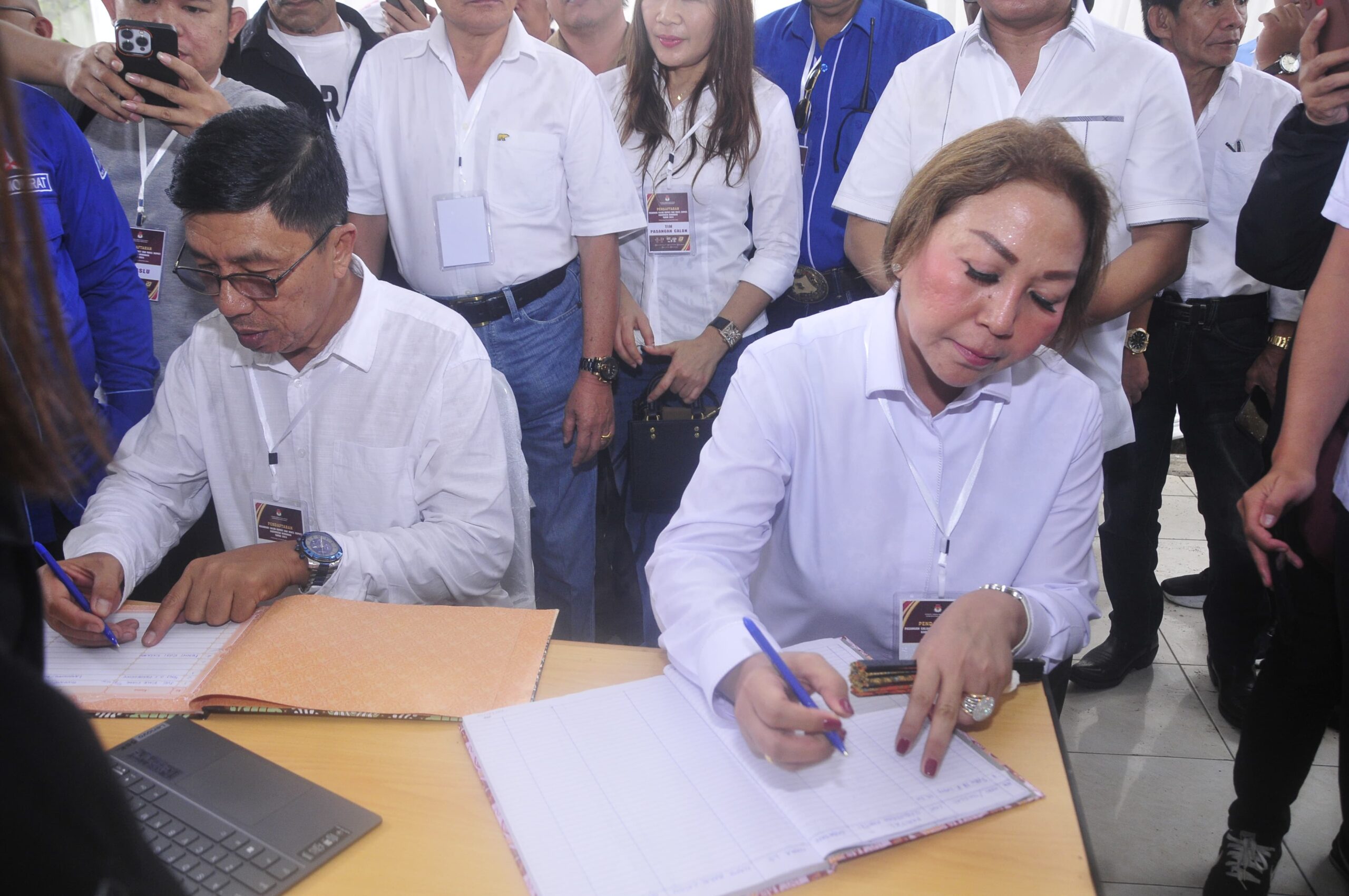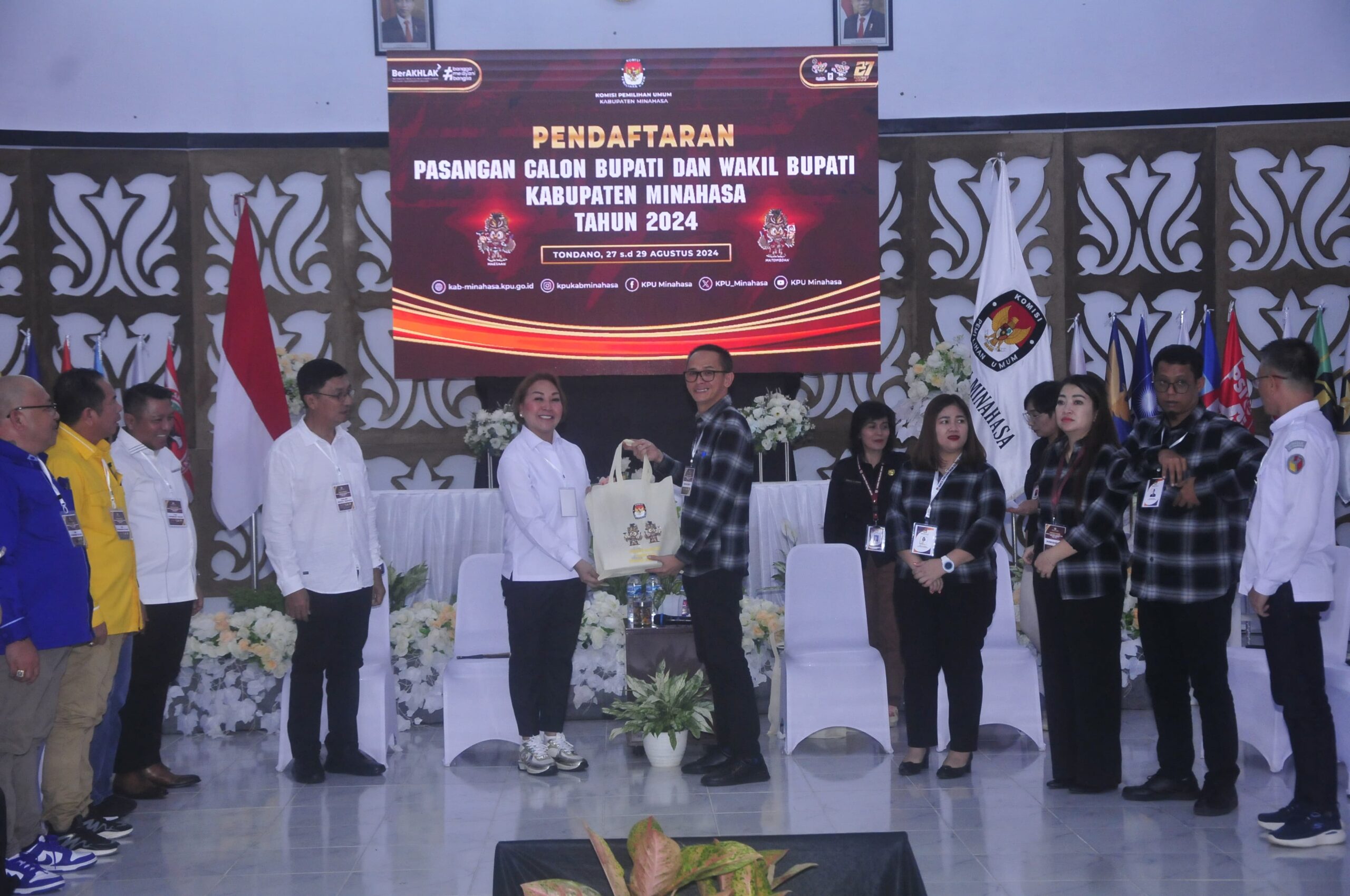 Pilarportal.com,Minahasa – Memasuki hari kedua pendaftaran calon Bupati dan Wakil Bupati Minahasa tahun 2024. Komisi Pemilihan Umum (KPU) Kabupaten Minahasa menerima pendaftaran pasangan Youla Lariwa Mantik (YLM) dan Denny Kalangi (DK) yang diusung oleh partai Demokrat, Golkar dan Perindo.