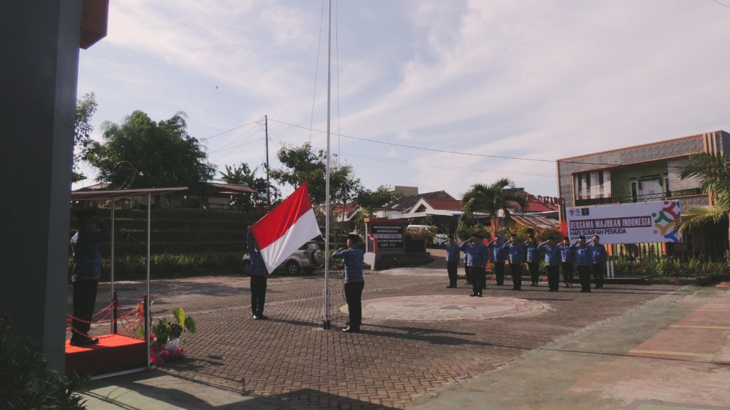 Upacara Hari Sumpah Pemuda ke – 95 dengan tema ‘Bersama Majukan Indonesia’, diikuti seluruh pegawai Lembaga Pemasyarakatan Klas IIB Tondano.