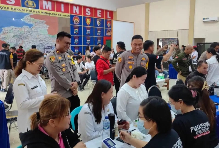 Pemeriksaan kesehatan dan pengobatan gratis merupakan kerjasama Seksi Dokkes Polres Minsel dengan Bid Dokkes Polda Sulut dan Dinkes Pemkab Minsel.