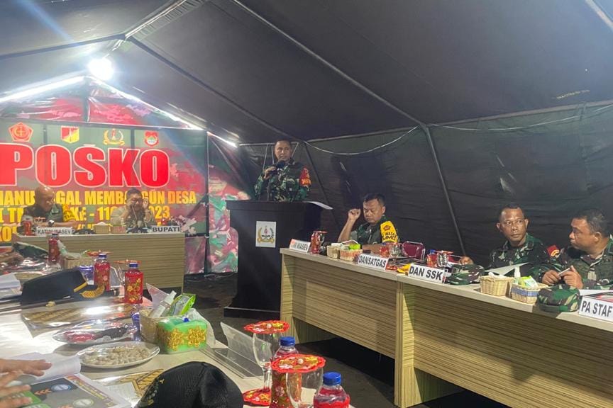 Sebelum turun ke lokasi TMMD Aslat Kasad beserta rombongan menerima paparan Dansatgas TMMD Ke 116 TA 2023 Letkol Inf Hermanto (Dandim 1308/LB) di Tenda Posko TMMD.