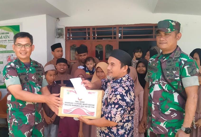 Selain menyapa keluarga besar TNI, Korem 133/NW juga menyalurkan bantuan kepada anak-anak yatim piatu di Panti Asuhan Darul Mutmain Tibawa dan Panti Asuhan Darul Mutmain Tabongo.