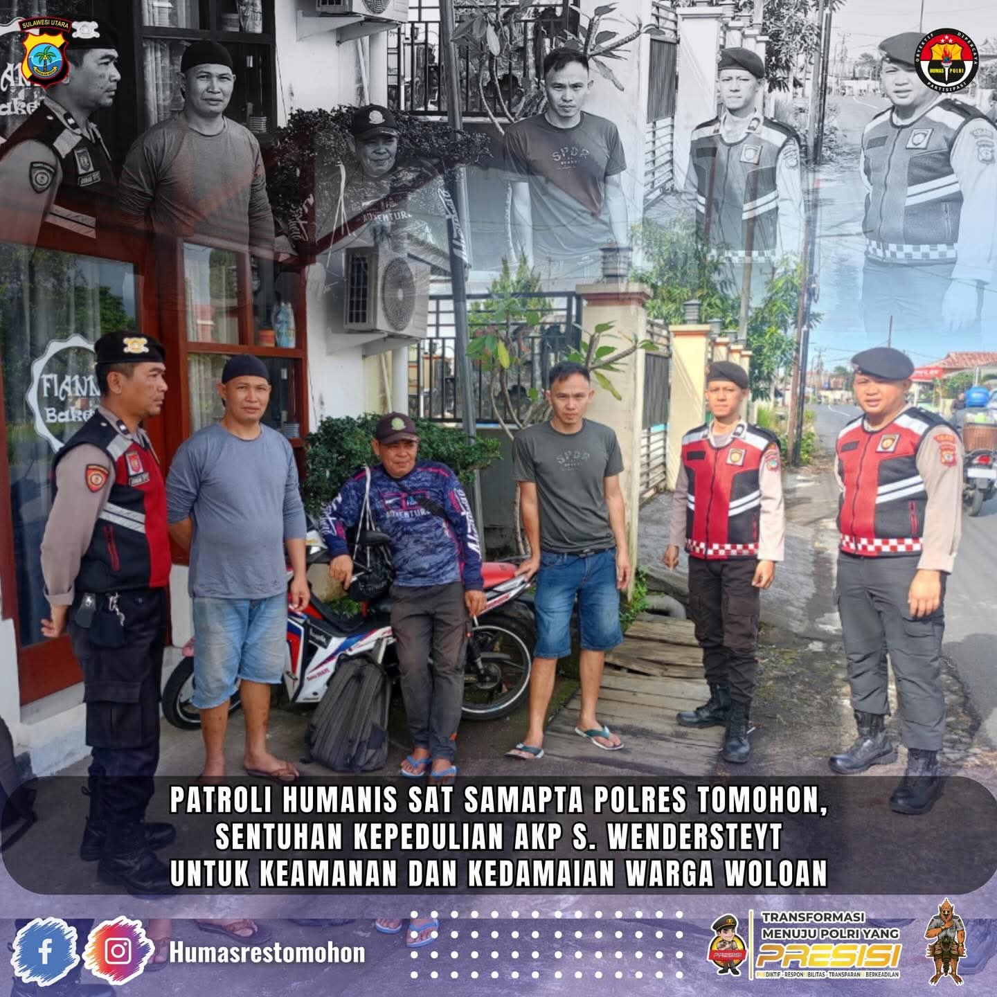 Pilarportal.com,TOMOHON – Personel Sat Samapta Polres Tomohon kembali menunjukkan komitmennya dalam menjaga stabilitas keamanan melalui pendekatan yang humanis.
