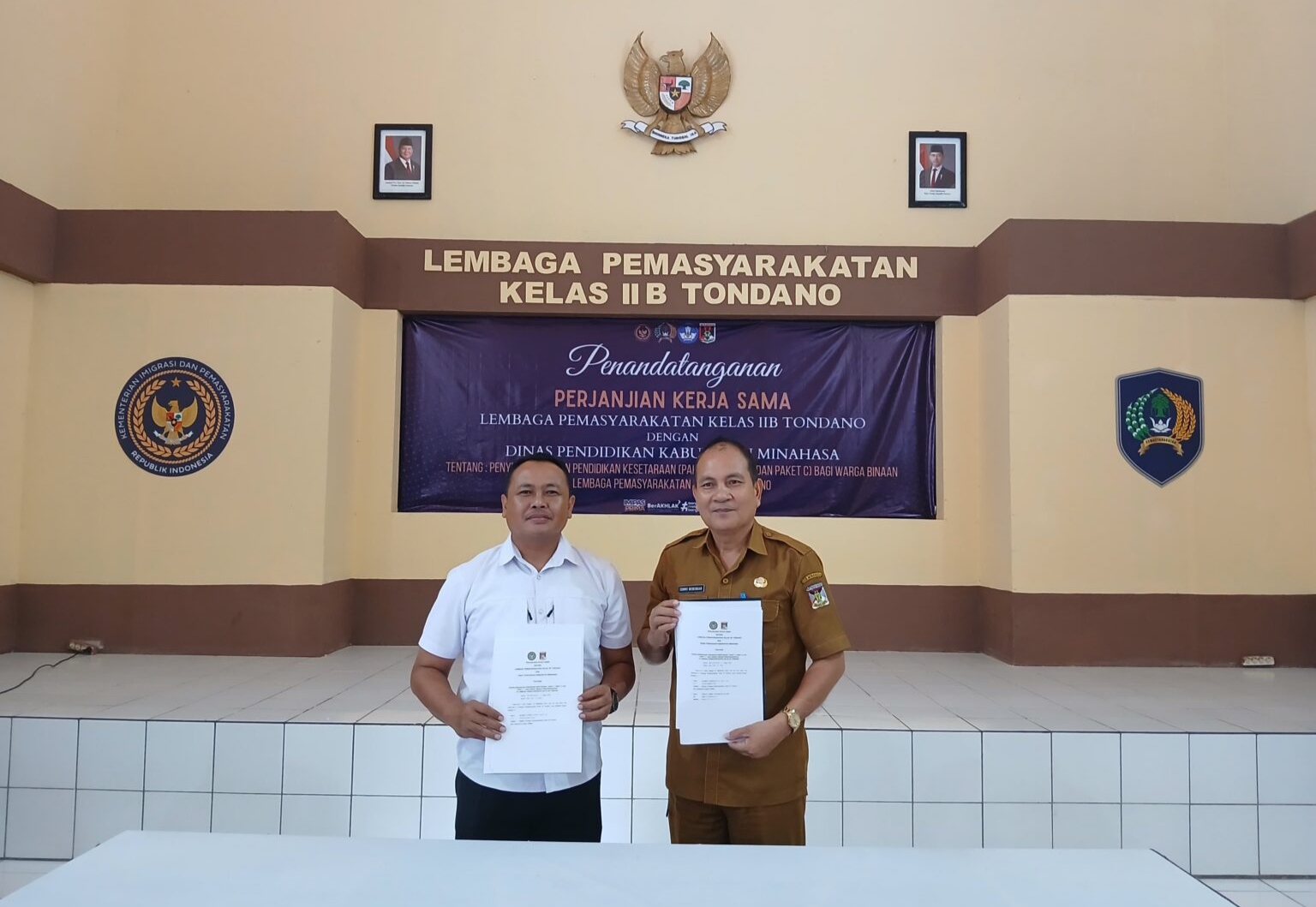 Pilarportal.com,TONDANO—Lembaga Pemasyarakatan (Lapas) Kelas IIB Tondano secara resmi menjalin kerja sama dengan Dinas Pendidikan Kabupaten Minahasa untuk menyelenggarakan pendidikan kesetaraan (Paket A, B, dan C) bagi Warga Binaan Pemasyarakatan (WBP). Perjanjian ini ditandatangani pada Senin, 29 September 2025, di Aula Dr. Sahardjo Lapas Tondano.