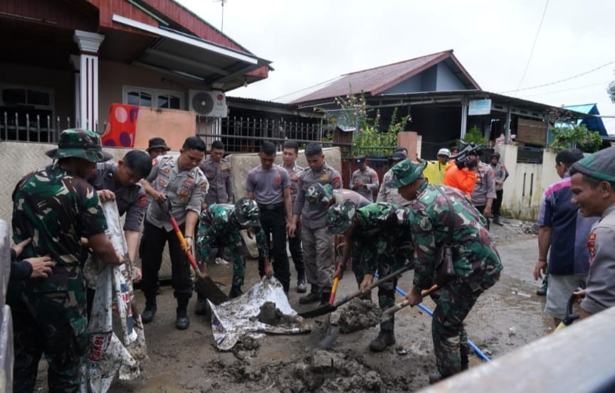 Pilarportal.com – Manado – Personel TNI Prajurit Kodam XIII/Merdeka bersama Polri sampai hari ke-4 paska banjir melanda Kota Manado Prov. Sulawesi Utara masih terus melakukan kegiatan kerja bakti bersih-bersih lingkungan di lokasi banjir dan tanah longsor, sampai keadaan kembali seperti semula, di Manado, Selasa (31/1/2023).